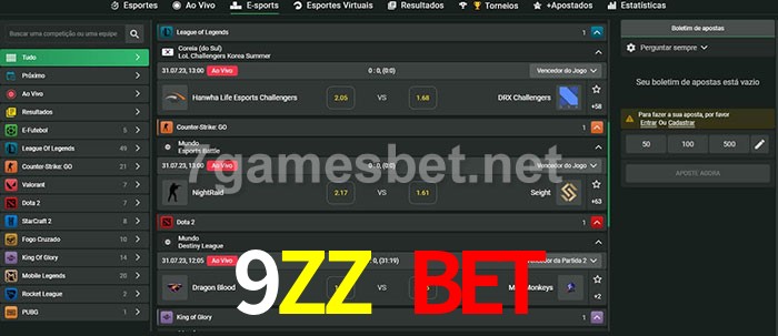 O 9ZZ Bet oferece uma grande seleção de opções de apostas em e-sports com probabilidades competitivas